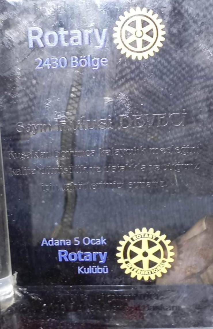 Adana 5 Ocak Rotary Kulübü Tarafından Takdir Ödülü Plaketi Törenle Takdim Edildi.
